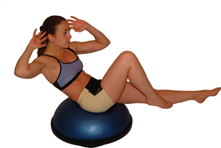 Its important to keep your balance on the Bosu throughout this exercise, this is best achieved by not sitting to high up on the Bosu.