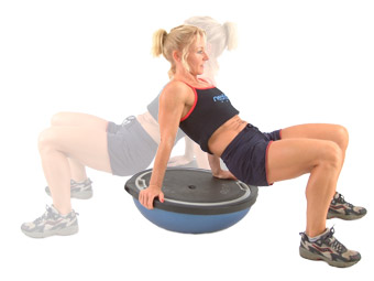 Place the Bosu with sufficient space to maneuver around it. Make sure that your hands and the top of the Bosu is dry, and position your hands either side of the centerline, with your fingers pointing down towards the floor.