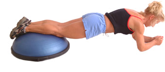 Place your knees together in the center of the Bosu, with your legs straight so that your upper shins and lower thighs are also making contact with the Bosu.