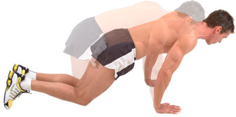 Aiming to keep your back straight throughout the movement, inhale and contract your abs and back muscles simultaneously, as you slowly lean forward, transferring your bodyweight onto your hands.