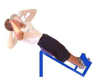Position yourself in a comfortable position on a Roman Chair, with both legs supported under the lower feet restraints at ankle height, with your feet pointing upwards.
