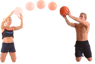 Focus the movement on a smooth controlled overhead ball to pass it to your partner. Your partner will then catch the ball, ideally just to their side with arms fully extended, prior to bending with the ball to their other side, keeping arms extended, prior to throwing back again.