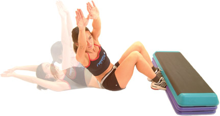 Lie on your back, with your feet secured under a step-box or other similar object (sofa).