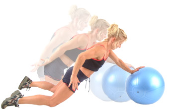 A difficult exercise that should only be attempted by conditioned persons, using a slightly deflated Swiss Ball.