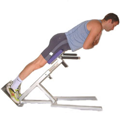Using the muscles of your lower back lift yourself up ideally until your torso is parallel to the floor for beginners, and up to a position where your back and legs are in line for intermediates / advanced.