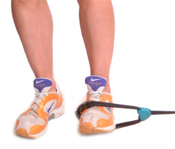 Smoothly pull your foot inwards, against the resistance that should be felt on the outer side of your foot, keeping your heel on the ground throughout the movement.
