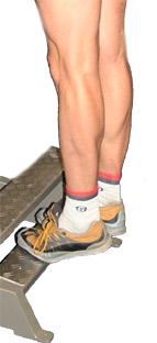 Keeping your legs straight, lower your heels and the weight as far as possible toward the floor, rising up on your toes as far as possible.