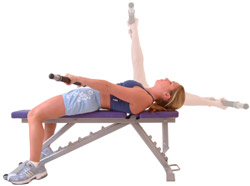 Always warm-up the muscles by performing a few reps without any weights, just using the bar. This exercise will work the chest and shoulder muscles.