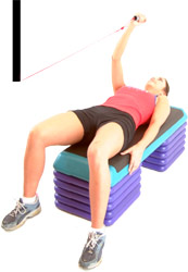 Lie on your back, on either a flat - declined or inclined bench, making sure that you keep your back and shoulders on the bench throughout the movement.