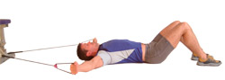 This is an excellent exercise, which can be performed either standing or seated with the band connected to a secure object overhead, or alternatively, whilst lying on the floor.