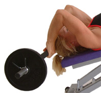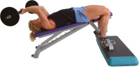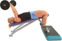 Lie supine (face-up) on a declined bench, holding a suitably weighted barbell, with your arms straight weight inline with your shoulders.