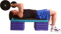Lie on your back, holding a suitably weighted barbell at arms length above your shoulders, with your hands shoulder width apart.