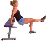 Aiming to keep your buttocks close to the bench, lower yourself down towards the floor, taking your elbows behind you in a smooth controlled motion, maintaining a straight leg position.