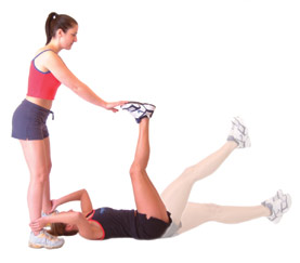 At the vertical 90-degree point, you partner should lightly push your feet back down towards the ground.