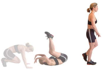 You may wish to perform the final jump up on one leg and finish with a sprint forward – to the sides or even rearward.