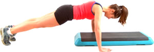 Place your hands either side of a step box or other secure object. Aim to push off the floor so that your hands land securely onto the middle of the step box.