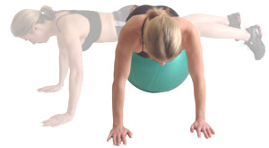 Rest your body on a suitable sized Swiss Ball, either resting on your upper thighs (easier), or on your feet.