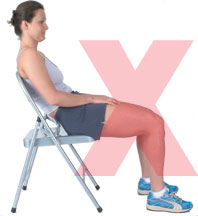 How to Sit Seat cushions need to be sloping at the front, with your legs not in contact with the chair, feet flat on the floor to improve circulation. Armrests reduce the strain on your shoulders, neck and back.