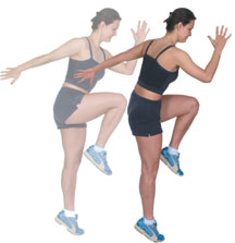 Sprint Keep the other leg straight, coming up off your toes, driving the arm of that side up to head height, slightly forward of your body's centerline. The fingers of both hands should be spread, with your other arm extended straight back behind you. You can work one leg at a time, or simply alternate aiming to gradually build up both the speed and range for each action. |