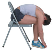 1. While seated, exhale, bending forward, and hugging your thighs underneath with both arms.