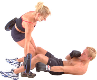 Your partner should look at the position of the mitts to work all areas of your abdominal muscles; these can be close to your knees, high over your chest, out to your sides high (good for oblique - right hook to left side), low to your sides (right jab to right side).