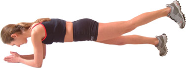 Once in the standard Plank position, slowly raise 1 foot 10 - 14 inches off the floor, fixing this position for as long that is comfortably possible by keeping your abdominal - lower back and buttock muscles contracted throughout.