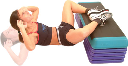 Exhale and lift both shoulders off the floor, whilst keeping your hands behind your head to support the weight of your head, avoid pulling on your head during any part of the movement, concentrate on keeping your elbows out to your sides.