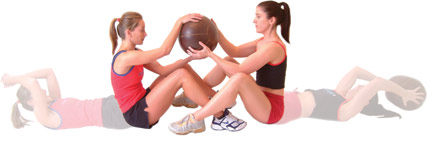 Both partners need to lie on their backs, with partner 1 holding a suitable sized medicine ball, either on your chest, (easier) or with arms extended behind your head, (harder), your legs should be hooked around each others ankles, at the start of each rep.