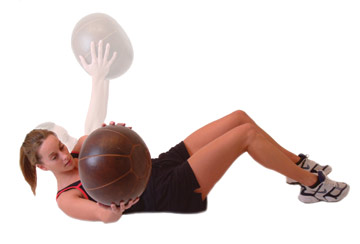 Hold a suitable sized medicine ball firmly in your hands, arms extended straight above your chest.