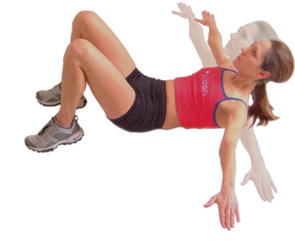 Holding small dumbbells will increase the difficulty of this exercise; however always aim to keep the shoulders off the floor.