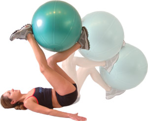 Avoid allowing the back to arch up off the floor; the movement should be from your pelvis, taking the ball no further than chest level.