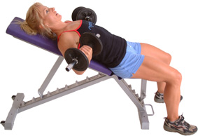 Concentrate on keeping your lower back pushed into the bench, especially as you commence the exercise, in order to avoid arching in your lower spine.