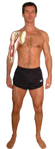 (the muscle at the rear) making up approximately 2/3rds of the upper arm mass.