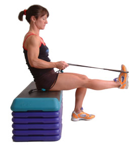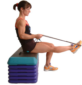 Sit comfortably with one leg extended straight out in front of you, placing a resistance band on the ball of your foot, keeping the handles pulled back by your sides to keep the resistance on the band.