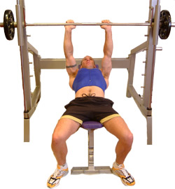 Always make sure that you position your hands equally apart from the central part of the bar, taking care that when you initially lift the bar from its locking nuts, you rotate the bar around slightly to prevent the bar locking again as you lower.