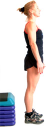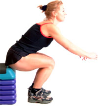 Focus on just touching the step box with your buttocks, rather than actually sitting down, taking care to have the step box at the correct height to enable your thighs to be parallel to the floor, you may decide to go a little lower, however always warm-up and work within your own limits.