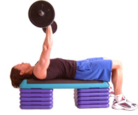 Lie on your back, holding a suitably weighted barbell at arms length above your shoulders, with your hands shoulder width apart.
