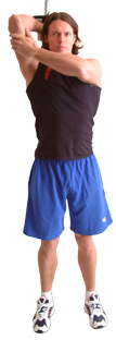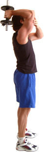 Throughout the movement, focus on keeping your upper arm vertical with the elbow close to your head, in order to help isolate the tricep muscle.