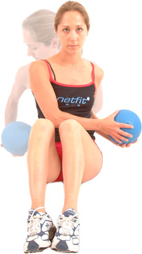 Beginners should use a lightweight small ball, ideally in a standing position, keeping the ball close to the body throughout the movement.