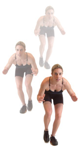 Staying in a slight squatted position, step out to one side and slightly forward with one leg, immediately repeating the process over to your other leg, so that your covering the ground to your front and both sides.