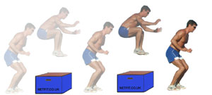 The basic jumping movement is to have boxes set up of the same height in a line, about 1 large stride apart. You will need to take off and land on the top of the first box, and then land between the first and second box, repeating the process until the last box.