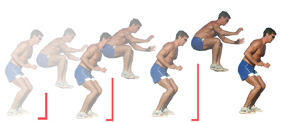 Upon landing you will need to immediately explode up and over the next hurdle, aiming to land on both feet, avoiding excessive bending in the legs, keeping your knees pointing forward throughout the exercise.