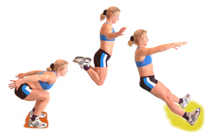 From a static squatted position, swing your arms back, then explode both upwards and forwards, aiming to travel as far forward as possible.