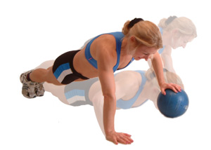 Rest one hand on the top of a suitable medicine ball, perform a press up, however as you come up, push down on the ball and explode up and over the ball, changing the hand on the top of the ball, lowering down into a further press up, prior to repeating again to your starting side.