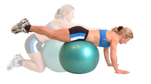 Choose a suitable Swiss Ball, ideally one that will keep your back horizontal whilst your arms are straight on the floor.