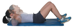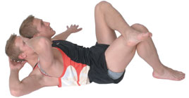 Simple Obliques Cross one foot over the other leg, resting it upon the thigh. Extend the arm of the crossed leg side outwards; palm facing down to the floor. Support the weight of your head with your other hand, keeping your chin off your chest, and avoid pulling on your neck. Slowly take your supporting elbow up towards your opposite knee. Avoid forcing the movement, travel as far as your abdominal strength allows, repeat 5 - 15 times each side. |