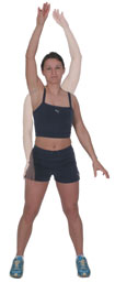 Back Stroke Begin by taking one hand at a time, up over your head, in a complete circle, bringing the hand close to your hip during the downward phase. Gradually build the speed up, aiming to keep the arms straight throughout, fingers pointed. Progress by taking both arms back at the same time, realizing that the arms will move away from your hips during the downward phase. Work for 1 - 3 minutes. |