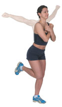 Chest and Quads B As your heels come up, take your arms across your chest, then out to the side, opening up your chest. Perform the movement 10- 20 times on each leg, gradually increasing the range of movement. |