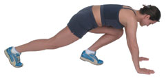 Squat Thrusts Staying on your toes, with your back parallel to the floor, extend one leg straight back, whilst the other is brought up towards your chest. Alternate the legs, performing 5 -15 slow movements. |