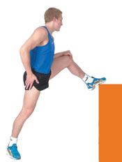 1. Rest one foot on a secure raised platform, such as a chair, with the foot either facing forward or away from your body.